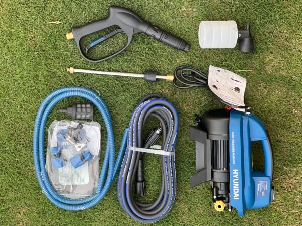 Item Quantity Pressure gun 1 Pc Water out let pipe 8 Meter Clear filter 2 Pcs Pipe inlet connector 2 Pc Soap bottle 1 Pc Large lance 1 Pc Water inlet pipe 1 Pc (6 feet) Bucket stain 1 Pc Tap connector 1 Pc
